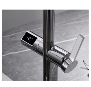 Incorpora un difusor de doble chorro (jet) que permite alternar fácilmente entre dos tipos de flujo de agua, ideal tanto para lavar como para enjuagar alimentos o utensilios. Además, cuenta con tecnología on/off con sensor de movimiento y panel digital que muestra la temperatura del agua, ofreciendo una experiencia intuitiva y cómoda. Este sistema funciona con 4 pilas AA, sin necesidad de instalación eléctrica.
