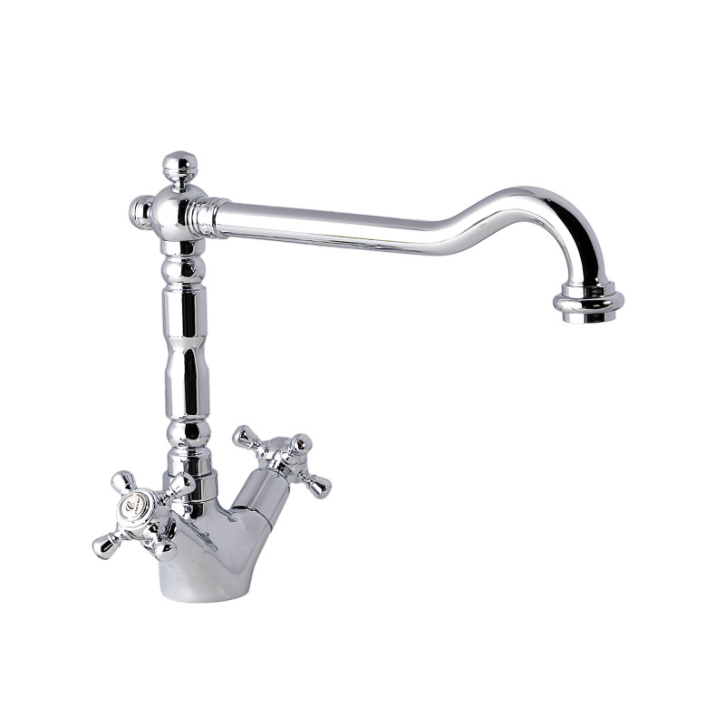 El grifo de fregadero bimando Antigona es una propuesta de aspecto clásico y líneas suaves y curvas, que dará un toque muy especial a tu cocina.