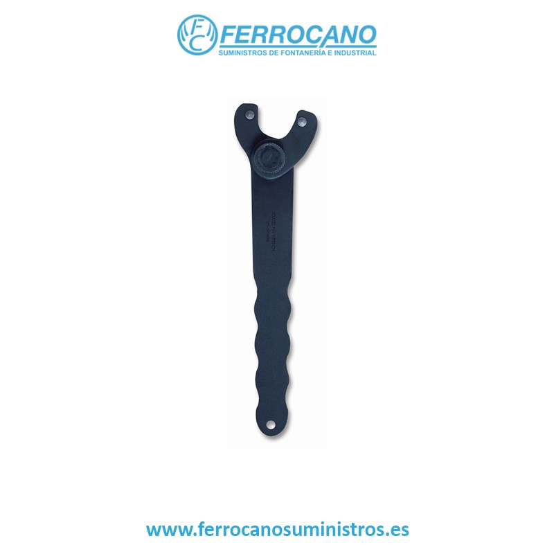 Llave ajustable para una amoladora angular. La separación entre los puntos puede variar de 20 a 35 milímetros.
