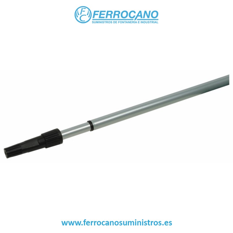 Alargador extensible de acero con punta estriado de 2 metros. Diseñado para sujetar rodillos. Notablemente ligero. Facilita un acceso sencillo a áreas elevadas. Tubo de acero con diámetro de 18-21 mm y longitud adicional de 2 metros. Empuñadura elaborada en polipropileno.