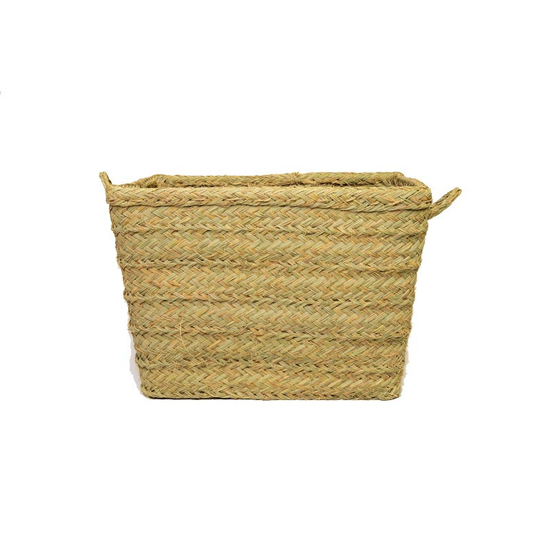 - Baúl de esparto natural diseñado para almacenar leña de manera organizada y decorativa.