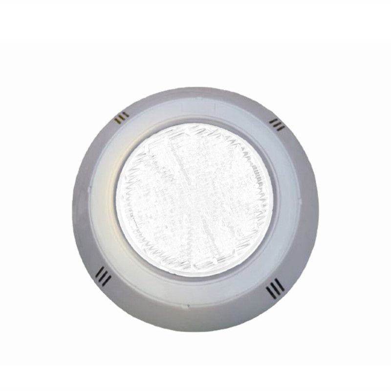El proyector LED blanco de 6.400K (blanco frío) para uso subacuático ofrece una excelente opción para piscinas nuevas o para reemplazos. Su instalación resulta sumamente sencilla, ya que se fija directamente al anclaje en la pared sin necesidad de nicho.