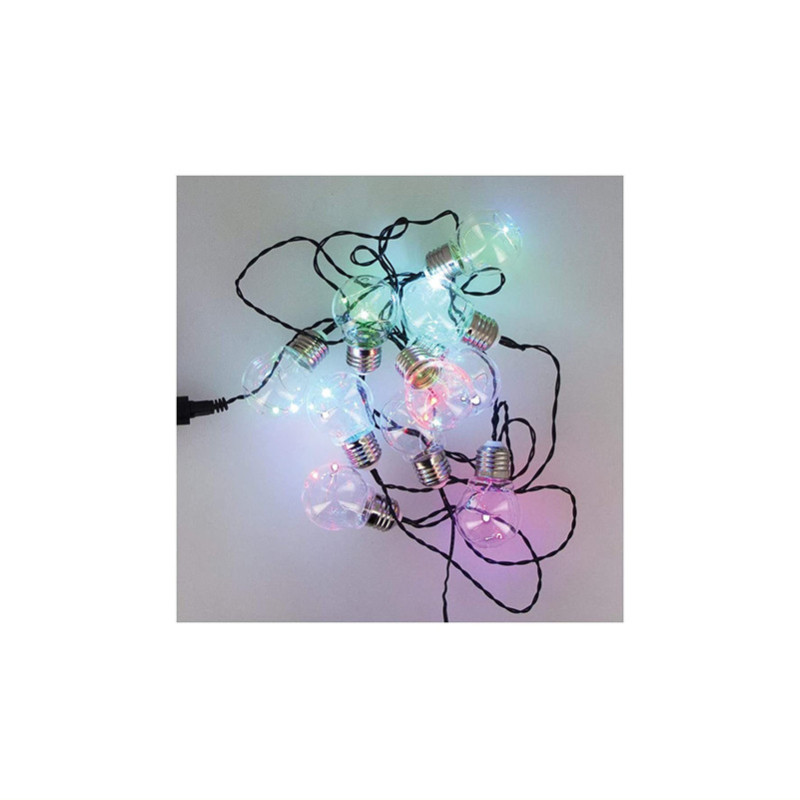 Esta cadena de luces LED para exteriores puede contener hasta 10 bombillas de tamaño P45, con un ángulo de visión de 120 ° (luz enfocada). Con una longitud de 5 metros, permite una instalación rápida y fácil. Proporciona una iluminación vibrante gracias a su amplia gama de colores RGB, lo que la convierte en un complemento original para tus reuniones con amigos. Además, disfrutarás de su durabilidad, ya que ofrece hasta 15,000 horas de iluminación, lo que equivale a años de uso con una distribución uniforme y eficiente. La cadena tiene un nivel de protección IP44, lo que la hace resistente al polvo y a las salpicaduras de agua. Con un consumo total de 1,2 W, es una opción ideal para una iluminación ambiental de bajo consumo, clasificada en la clase energética A.