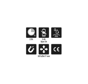Además, presenta una base magnética que añade versatilidad a su uso. Con un tiempo de carga de 2.5 horas, la lámpara tiene una duración de batería de 2-4 horas en uso general y 3 horas en el modo de foco. Se incluye un cable USB-C para facilitar su recarga.