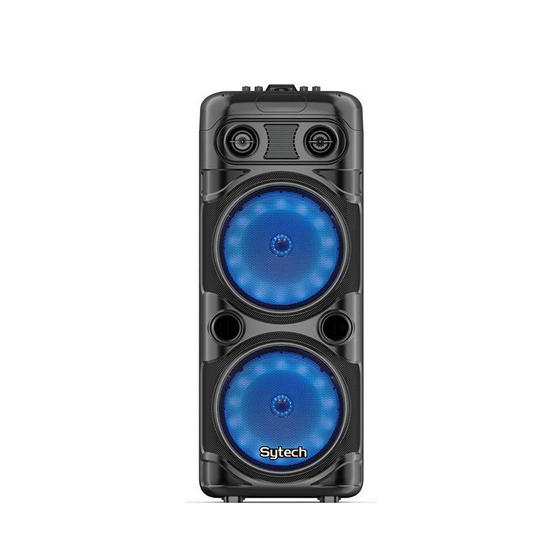 El altavoz Glow Jam 150 es el sistema acústico portátil ideal para fiestas y eventos, combinando un diseño compacto con una potencia máxima de 150W. Este equipo ofrece un sonido de alta calidad gracias a sus dos woofers de 8 pulgadas y un tweeter de 2 pulgadas, complementados con efectos de luces RGB que se sincronizan con la música para crear un ambiente vibrante con tres modos de iluminación diferentes.