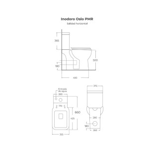 Inodoro Oslo adaptado para personas con movilidad reducida (PMR), modelo completo con salida horizontal.