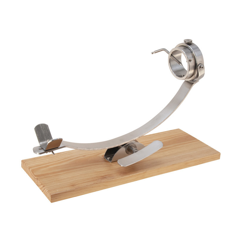 El jamonero giratorio modelo Balancín es la herramienta ideal para cortar jamón de manera cómoda, precisa y profesional. Su diseño incluye una base de madera robusta con medidas de 570 x 220 x 30 mm, que garantiza estabilidad durante el corte.
