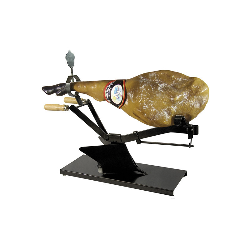 Descubre el elegante jamonero modelo arado de Flores Cortes, una pieza imprescindible para los amantes del buen jamón. Con una base de metal de 500mm x 180mm, este jamonero combina funcionalidad y estilo para realzar la presentación de tus jamones.