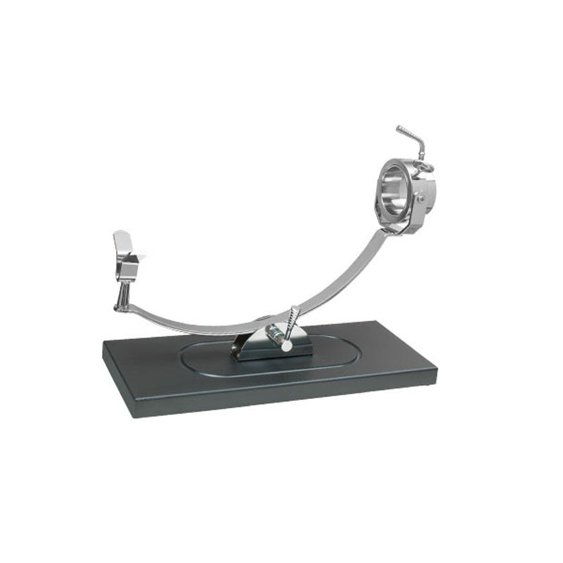- Casquillo giratorio cónico que facilita la entrada de la pezuña, con dos pinchos de acero inoxidable AISI-304 en su interior para centrar y sujetar firmemente la pata del jamón. Este sistema permite girar el jamón en cualquier ángulo sin necesidad de soltar el pincho de sujeción.
