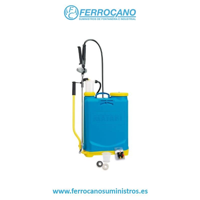 Regulador de presión (regulable a 1,5 bar - 3 bar y paso libre). Accesorio herbicidas. Fijador palanca-brazo-lanza.Cámara excéntrica. Lanza de latón cromado. Costilla interior de refuerzo. Correas acolchadas y regulables.Boquilla cónica regulable y adaptador de accesorios. Capacidad total y útil 16litros