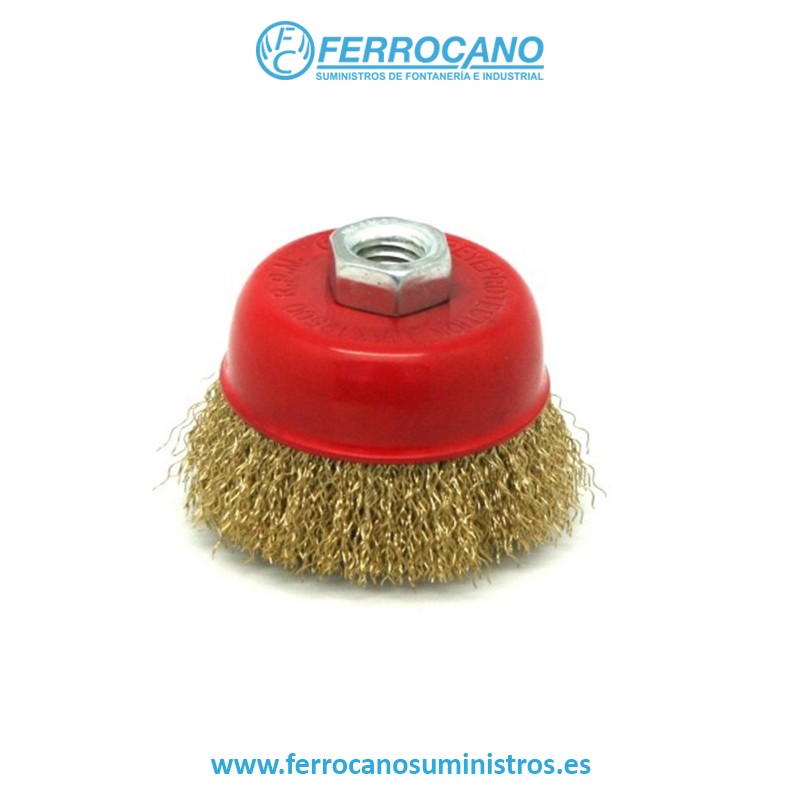 Cepillo industrial para amoladora en forma de taza, fabricado en acero, con medidas de 0,75 mm de grosor y 0,3 mm de grosor.