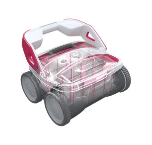 - Movimientos Eficaces: Equipado con cuatro grandes ruedas, este robot supera obstáculos y se mueve fácilmente por el fondo de la piscina, ideal para piscinas familiares.