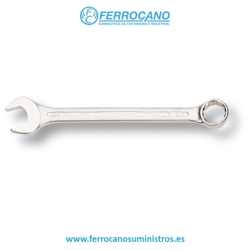 Llave combinada de dimensiones métricas que cumple con las normas ISO 691, ISO 7738, ISO 3318, ISO 1711-1 y DIN 3113. Fabricada en aleación de acero de alto rendimiento, esta herramienta se destaca por su perfil en forma de U, que ofrece una mayor comodidad durante su uso. La boca abierta presenta un ángulo de 15 grados y una cabeza más delgada para facilitar el acceso a espacios reducidos.