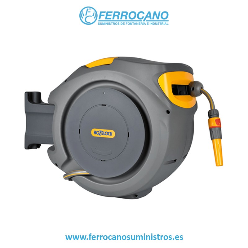 - Un potente resorte rebobina automáticamente la manguera sin torceduras, enredos ni esfuerzo.
