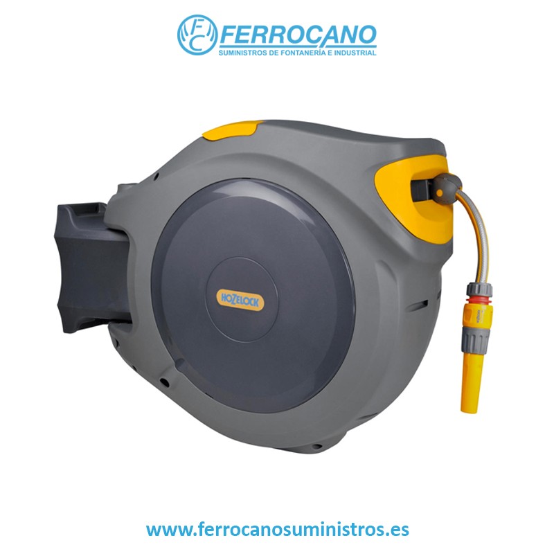 - Un potente resorte rebobina automáticamente la manguera sin torceduras, enredos ni esfuerzo.