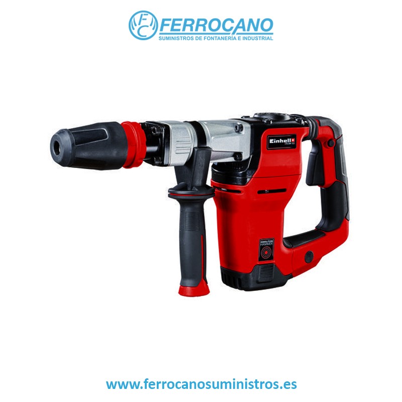 El martillo de demolición TE-DH 12 de Einhell es el ayudante ideal en lugares de construcción domésticos cuando se pone en marcha: tanto si hay que quitar muros o mover revestimientos de suelos y paredes, el martillo de demolición tiene una potencia consumo de 1050 vatios y una frecuencia de golpeo con una potencia inimaginable de 4100 golpes por minuto en el punto exacto. De este modo es fácil hacer trabajos de renovación, saneado y reconversión. El martillo de demolición está equipado con un robusto portaherramientas SDS-max. La empuñadura absorbevibraciones y la empuñadura auxiliar flexible y ajustable permiten trabajar con poca vibración. A pesar de su sorprendente potencia, la herramienta es fácil de manejar y es flexible gracias a su cable de goma extralargo y robusto. Equipado con un cincel puntiagudo y plano, el martillo de demolición TE-DH 12 de Einhell está listo para usar de inmediato. Se suministra en un estuche de transporte y almacenamiento E-Box.
