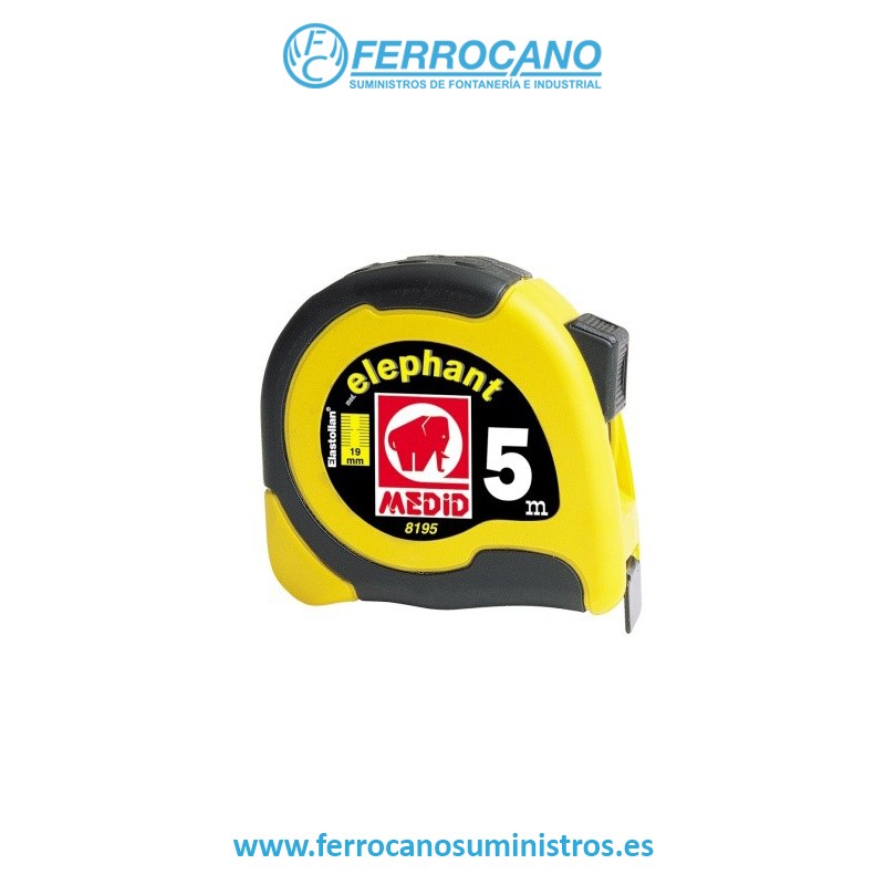 El flexómetro MEDID Elephant de 5 metros y 19 mm es una herramienta robusta y fiable, diseñada para ofrecer máxima durabilidad, precisión y comodidad de uso en trabajos profesionales de medición. Incorpora una carcasa bimaterial de ABS recubierta de Elastollan de alta resistencia y antideslizante, que protege el mecanismo interno y garantiza un agarre seguro incluso en condiciones exigentes. Su cinta de acero recubierta de nylon de alta protección ofrece una resistencia superior a la abrasión, con una duración hasta 10 veces mayor frente al desgaste habitual.