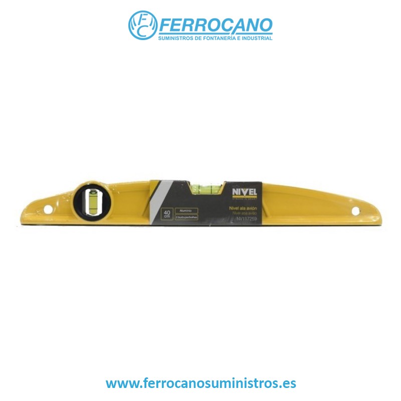 de 40 cm con dos burbujas, fabricado en aluminio.