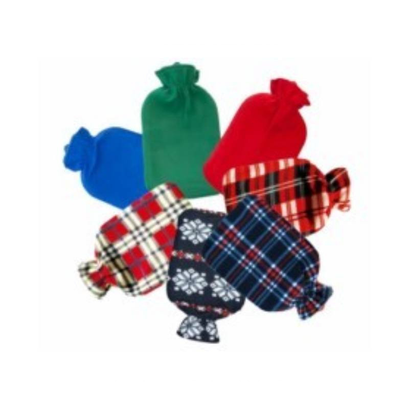 Bolsa de agua caliente fabricada completamente en caucho natural al 100%. Posee un cierre hermético y está revestida con una funda de suave material polar para proporcionar una agradable sensación al tacto.