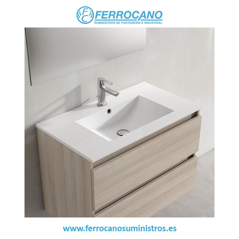 Incluye mueble de baño con 2 cajones en color crudo y lavado del modelo FLAT.