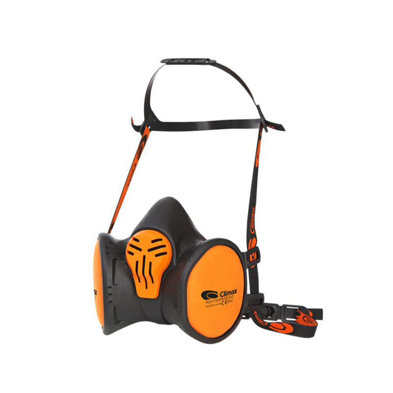 El cuerpo de la semimáscara está hecho de termoplástico hipoalergénico. Su diseño y material aseguran un ajuste hermético, evitando fugas de aire hacia adentro desde la unión con la cara. Incorpora dos filtros no intercambiables que, gracias a su posición, ofrecen un amplio campo visual al usuario.