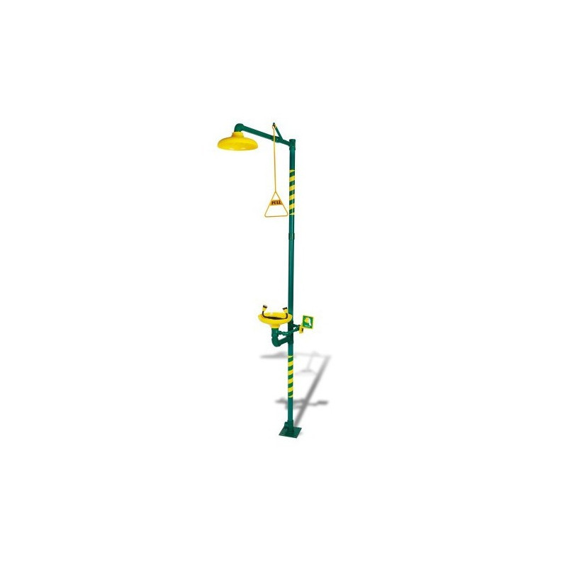 Prioriza la seguridad en tu entorno laboral con esta ducha lavaojos de pedestal.
