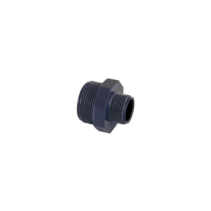 Conector de PVC de alta presión diseñado para unir tuberías de distinto diámetro en instalaciones hidráulicas. Su material resistente garantiza una conexión segura y duradera en sistemas de agua a presión.
