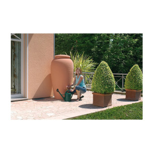 Depósito 500 litros con estética mediterránea para la recolección de agua de lluvia.