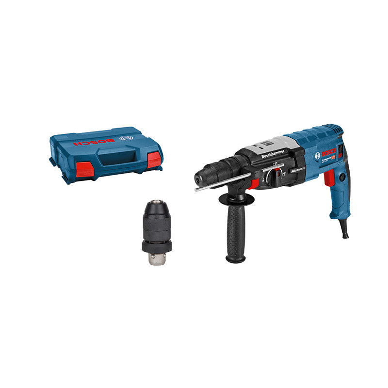 El Bosch PRO GBH 2-28 F es un martillo perforador SDS Plus de alto rendimiento, diseñado para trabajos intensivos en hormigón, mampostería y otros materiales. Con una potente energía de impacto de 3,2 J y motor de 880 W, ofrece una perforación rápida y eficiente incluso en aplicaciones exigentes.