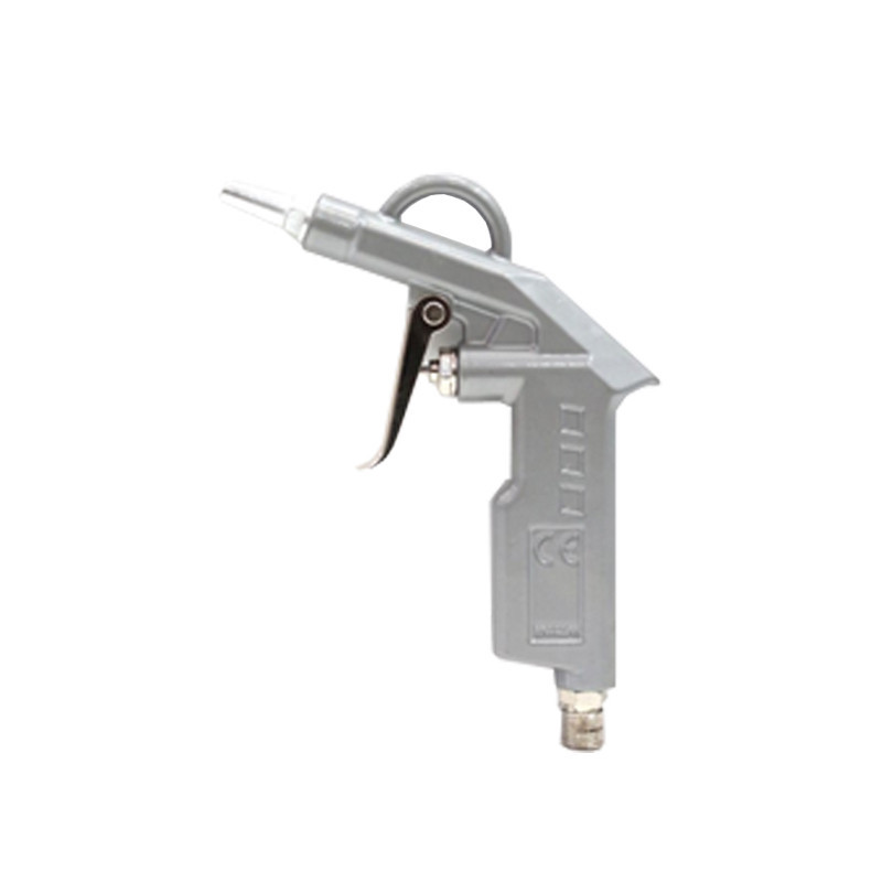 Pistola sopladora de la marca NIVEL con boquilla corta de 26,5 mm. Ofrece un consumo de aire de 125 l/minuto y una presión máxima de 8 bar, con rosca de 1/4.