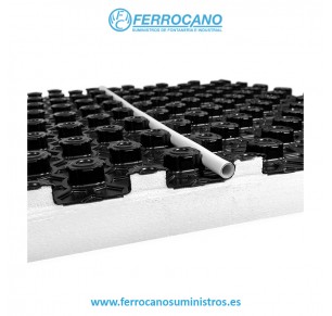 Además, su diseño con tetones asegura una sujeción firme de las tuberías, eliminando la necesidad de grapas u otros accesorios. Este producto cumple con los requisitos del nuevo CTE.