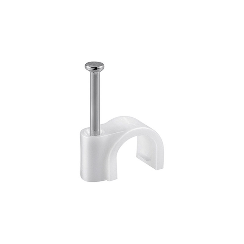 Grapa blanca en bolsa de 100 unidades para sujetar mangueras de dos hilos con sección de 1mm², medida número 6.