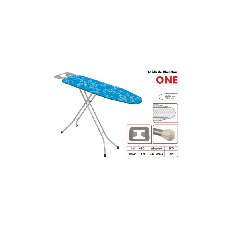 Tabla de planchar con plataforma recta en rejilla de 105x30 cm. Porta planchasde doble posición en chapa.