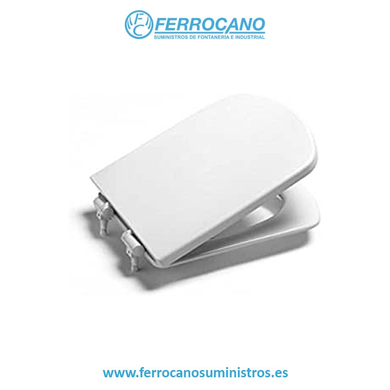 La tapa de WC perteneciente a la serie DAMA SENSO de Roca Sanitarios se caracteriza por su diseño cuadrado y está disponible en un elegante color blanco.