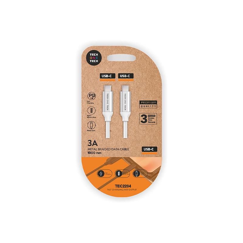 CABLE PD BLANCO (USB-C A USB-C) DE NYLON, 1M, 3A, DE TECH ONE TECH. SE TRATA DE UN CABLE USB-C POWER DELIVERY CON CONEXIÓN USB-C A USB-C, DISEÑADO PARA PROPORCIONAR DATOS Y CARGA RÁPIDA. ESTÁ FABRICADO CON NYLON RECUBIERTO, TRENZADO Y REFORZADO, LO QUE LO HACE RESISTENTE A LA TORSIÓN Y LA ABRASIÓN. SUS CONECTORES Y UNIONES METALIZADOS AUMENTAN SU RESISTENCIA Y DURABILIDAD. CON UNA CAPACIDAD DE CARGA DE 3A, TIENE UNA LONGITUD DE 1M Y UN PESO DE 30 GRAMOS. ES COMPATIBLE CON DISPOSITIVOS QUE TIENEN CONEXIÓN USB-C, COMO MÓVILES, TABLETS Y AURICULARES. SE RECOMIENDA USARLO CONJUNTAMENTE CON EL CARGADOR PD 3.0 BLANCO (TEC2251), UN CARGADOR ULTRARRÁPIDO DE 20W CON SALIDA USB-C. ESTE CABLE CUMPLE CON LAS NORMAS DE CE, FCC Y ROHS, OFRECIENDO MULTI-PROTECCIONES CONTRA SOBRECARGA Y CORTOCIRCUITO PARA PREVENIR DAÑOS A LOS DISPOSITIVOS. GARANTIZADO POR 3 AÑOS, REPRESENTA LA MÁS ALTA CALIDAD DEL MERCADO CON LA MAYOR GARANTÍA, DISEÑADO PARA DURAR.