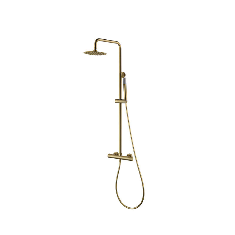 La barra de ducha termostática serie Monza de IMEX, con su acabado en oro cepillado, aporta un toque de lujo y modernidad al baño. Fabricada en acero inoxidable S.304, esta barra extensible garantiza resistencia y durabilidad, perfecta para un entorno de uso diario. Su rociador extraplano de 20 cm de diámetro es antical, lo que proporciona una salida de agua óptima y sin obstrucciones, además de contar con un soporte de mango regulable en altura para adaptarse a distintos usuarios.