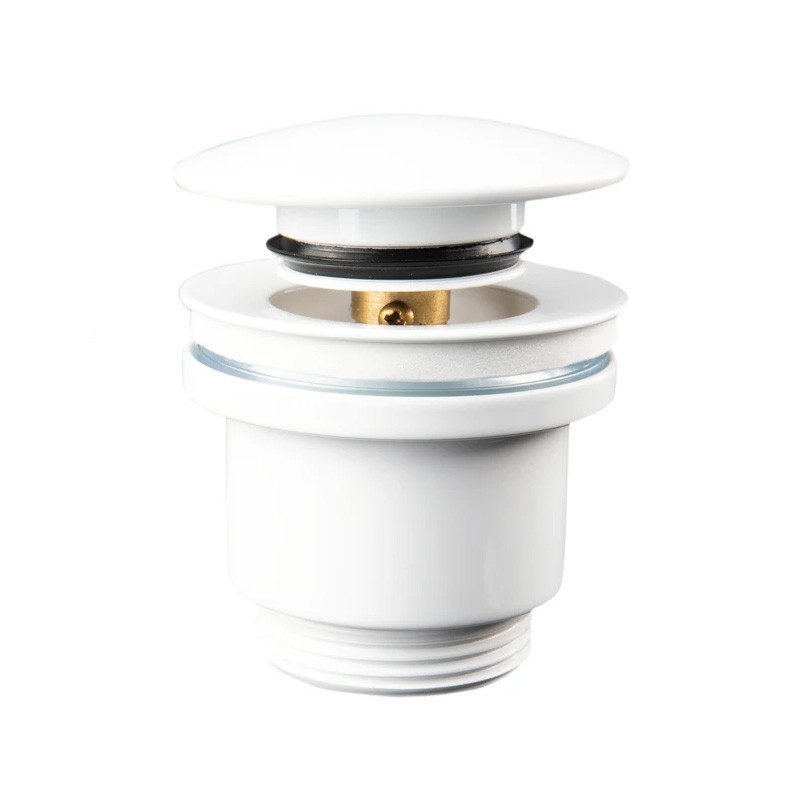 Válvulas Click Clack Seta fabricadas completamente en latón con acabado en blanco mate. Dispone de un tapón exterior de gran tamaño de 63Ø.