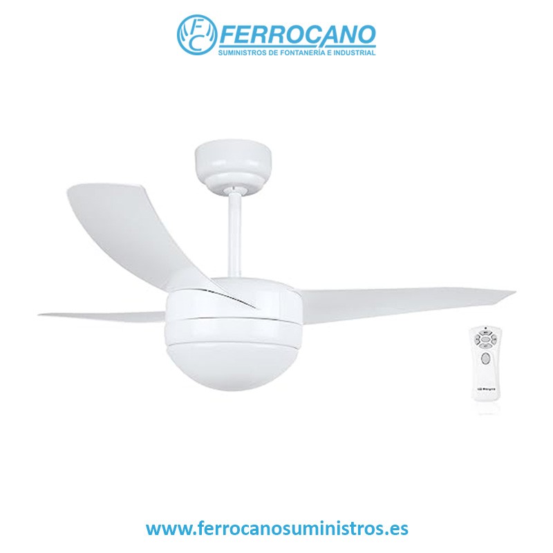 Este modelo incluye un mando a distancia que permite ajustar fácilmente sus 3 velocidades de ventilación y cambiar el sentido de giro para adaptar el flujo de aire según la temporada. Además, cuenta con 3 aspas y una tulipa con luz tipo E27 (compatibles con 2 bombillas de hasta 40W, no incluidas), ofreciendo una iluminación práctica y funcional.