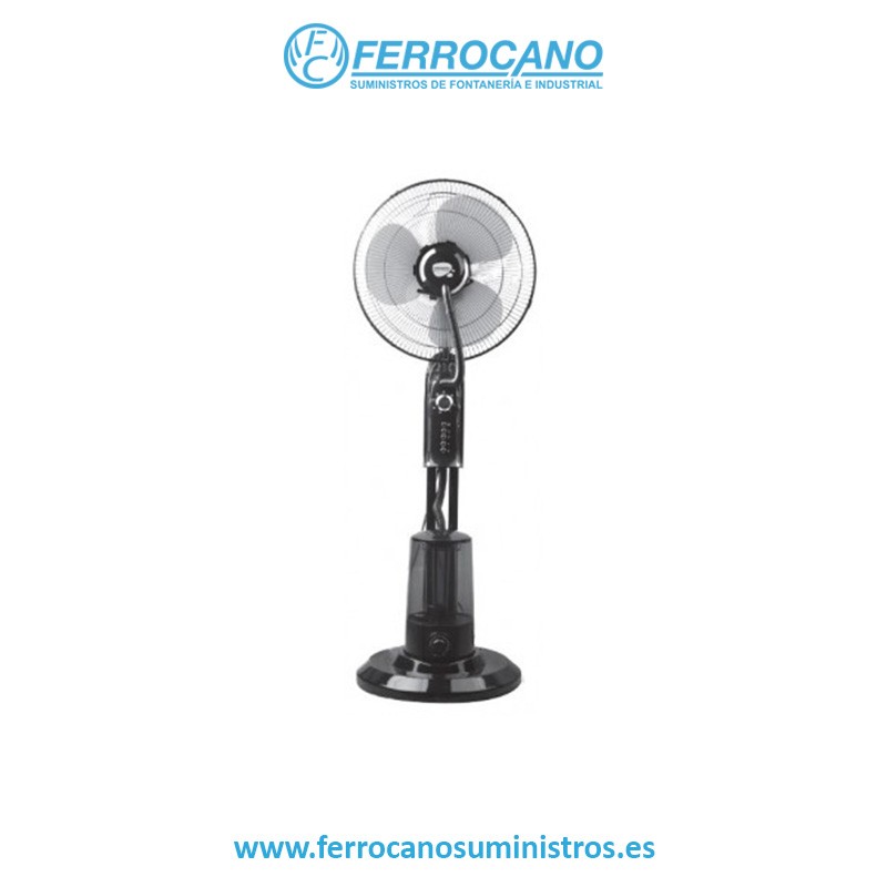 Ventilador nebulizador oscilante marca SONEDAS, con una potencia de 75 vatios, tres velocidades y un diámetro de aspa de 40 centímetros. Incorpora un temporizador de hasta 7,5 horas y tiene función oscilante. Su depósito tiene una capacidad de 3 litros, con un volumen máximo de niebla de 300 mililitros por hora.